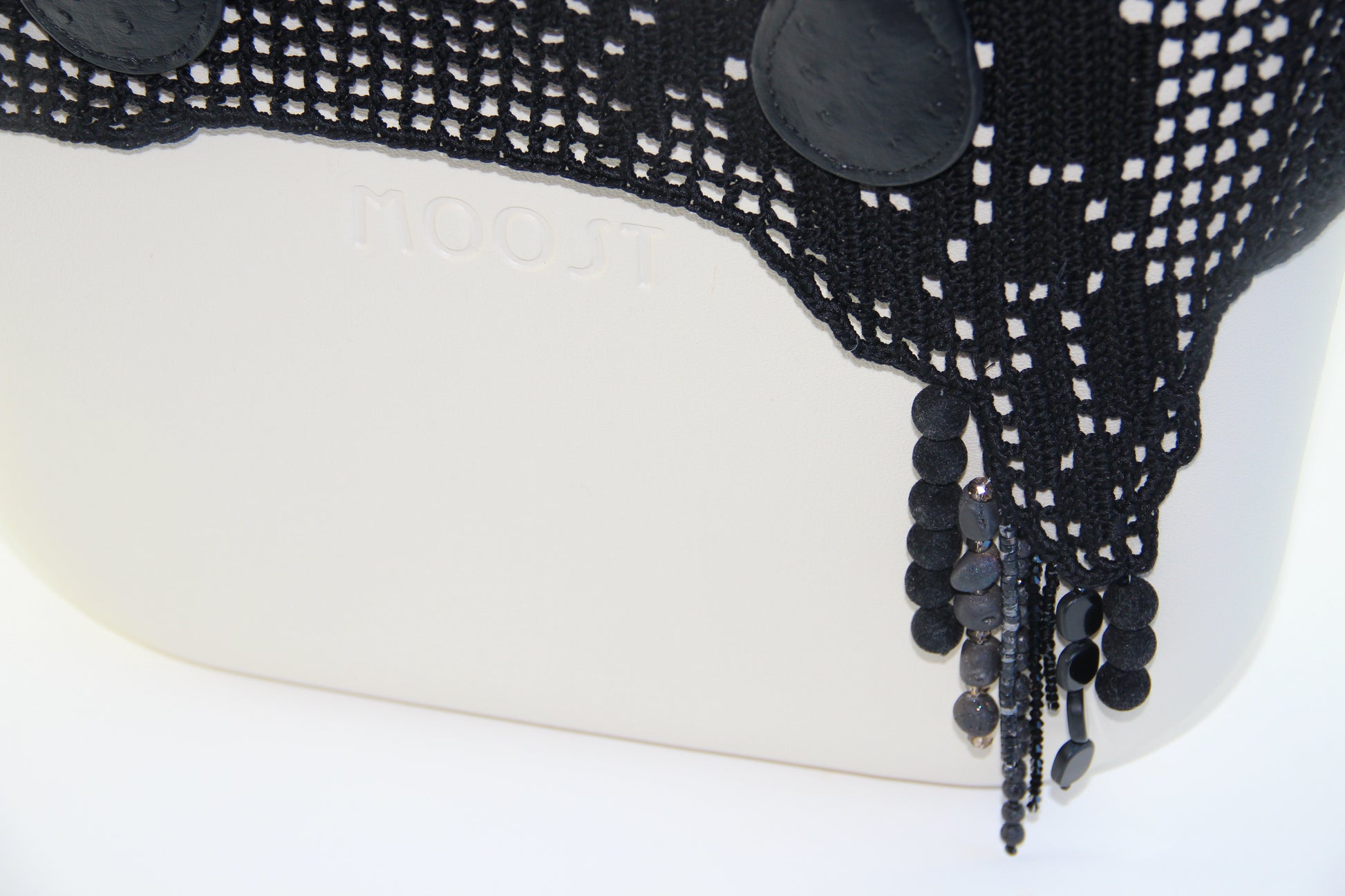 The Beaded Tat Trims adds class and elegance across the top of your shell to really make it a statement piece. Place the tatted trim on the Moost Shell, fold over the top of the Shell and then add your handle to secure in place.