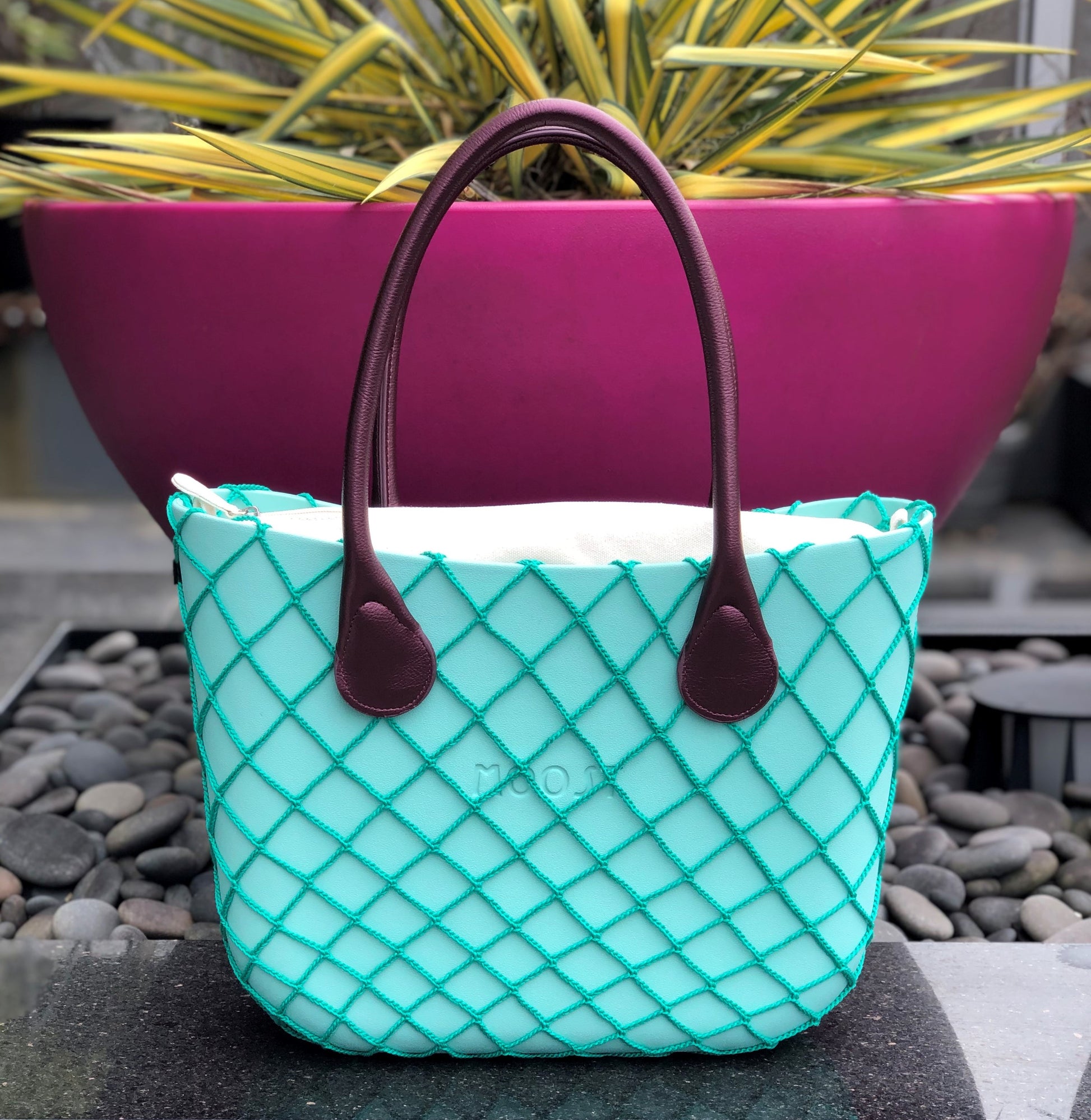 Moost Handmade Full Net Trims cover the entire Moost Bag Shell. Simply drop the Moost Shell into the full trim and and then attach your handle through one of the net sections.
