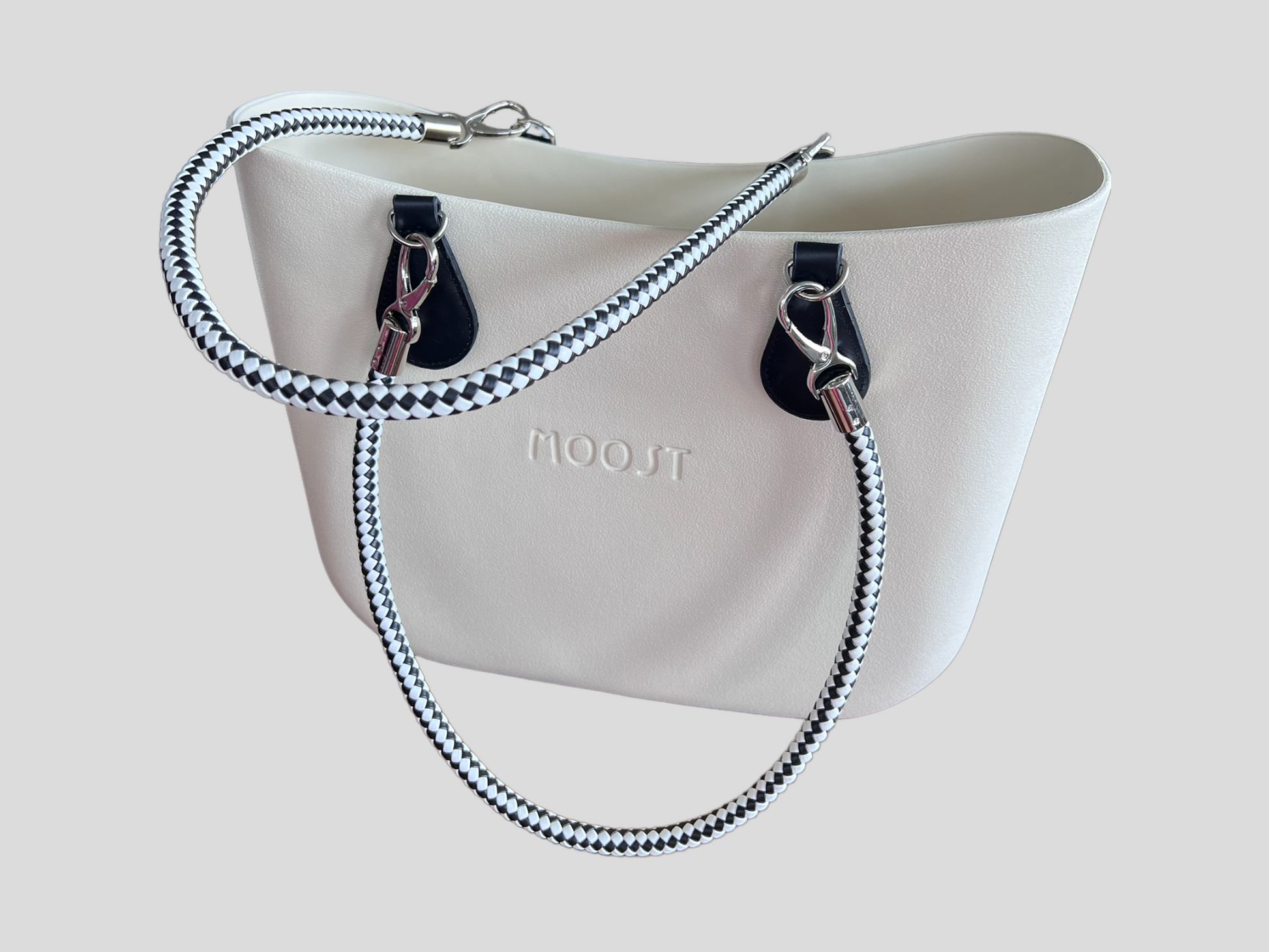 Purchase includes 2 Cross Hatch Handles for each side of the Moost Bag with Screw/Knob connector piece.