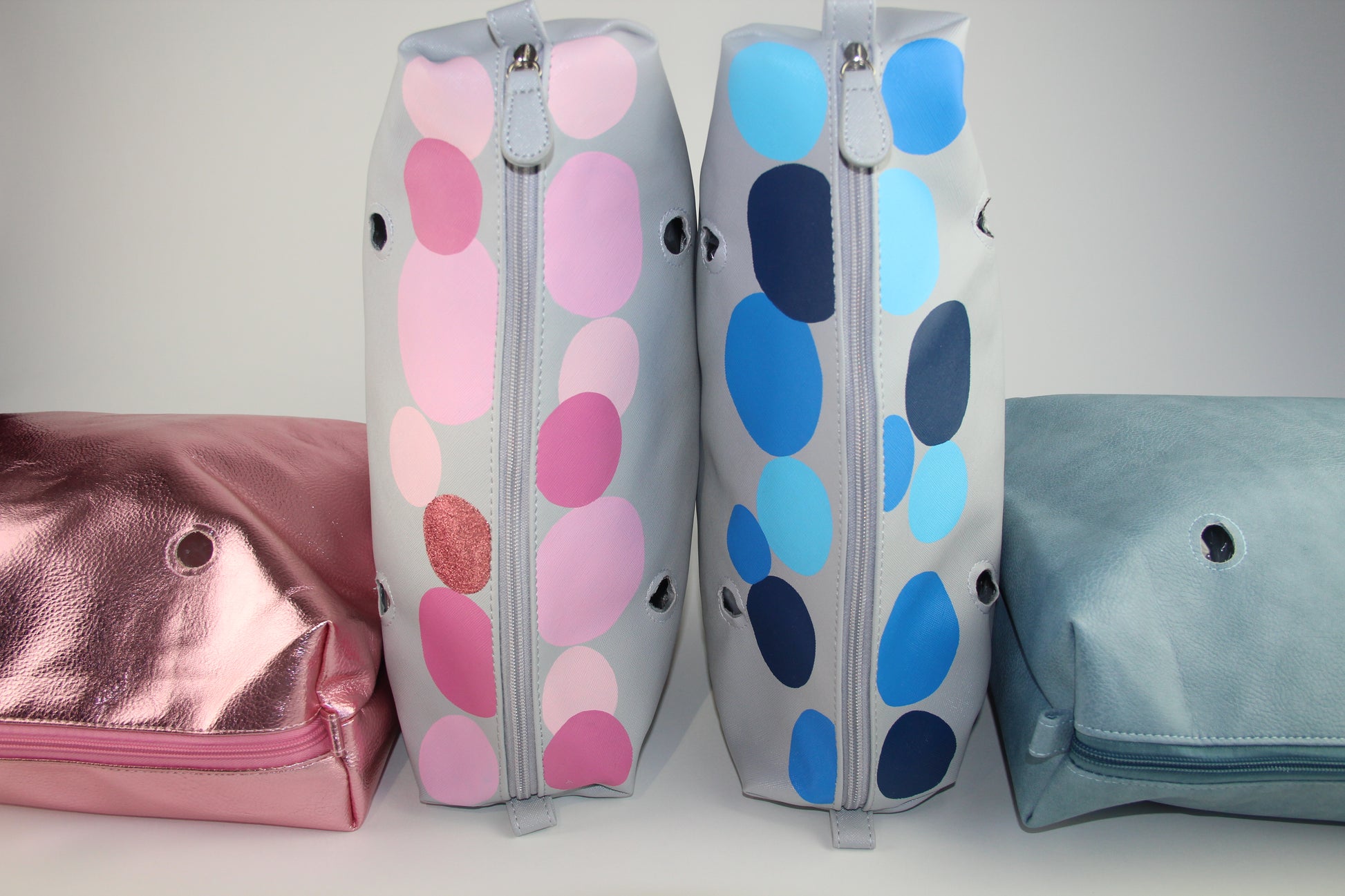 The Circle Capsule Inner Bags have been hand painted and sealed using Angelus leather paint products. They still remain durable and water resistant. This fully lined inner bag features a full zip top closure and includes one inner zip pocket. Simply place the Inner Bag into the shell and attach your choice of handle. This connects the inner bag to the shell and completely closes your Moost Bag.