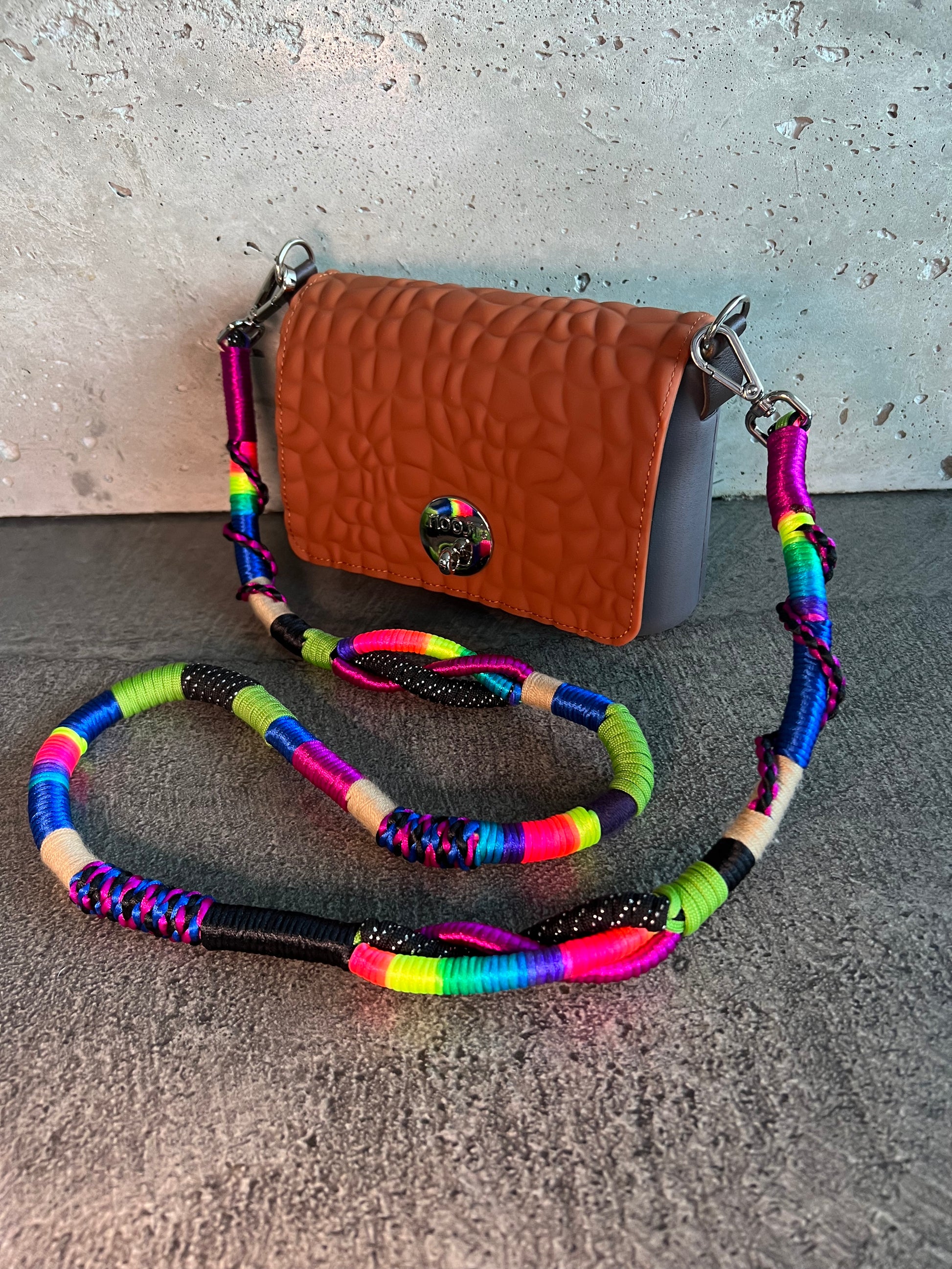 The Crossbody Strap of the Year is here! Introducing, the Boho Bright Happy Strap. An exclusive Moost Bags x Happy-Nes collaborative strap. Every color, every wrap design, every thread was hand selected to compliment every Crossbody Flap Color.