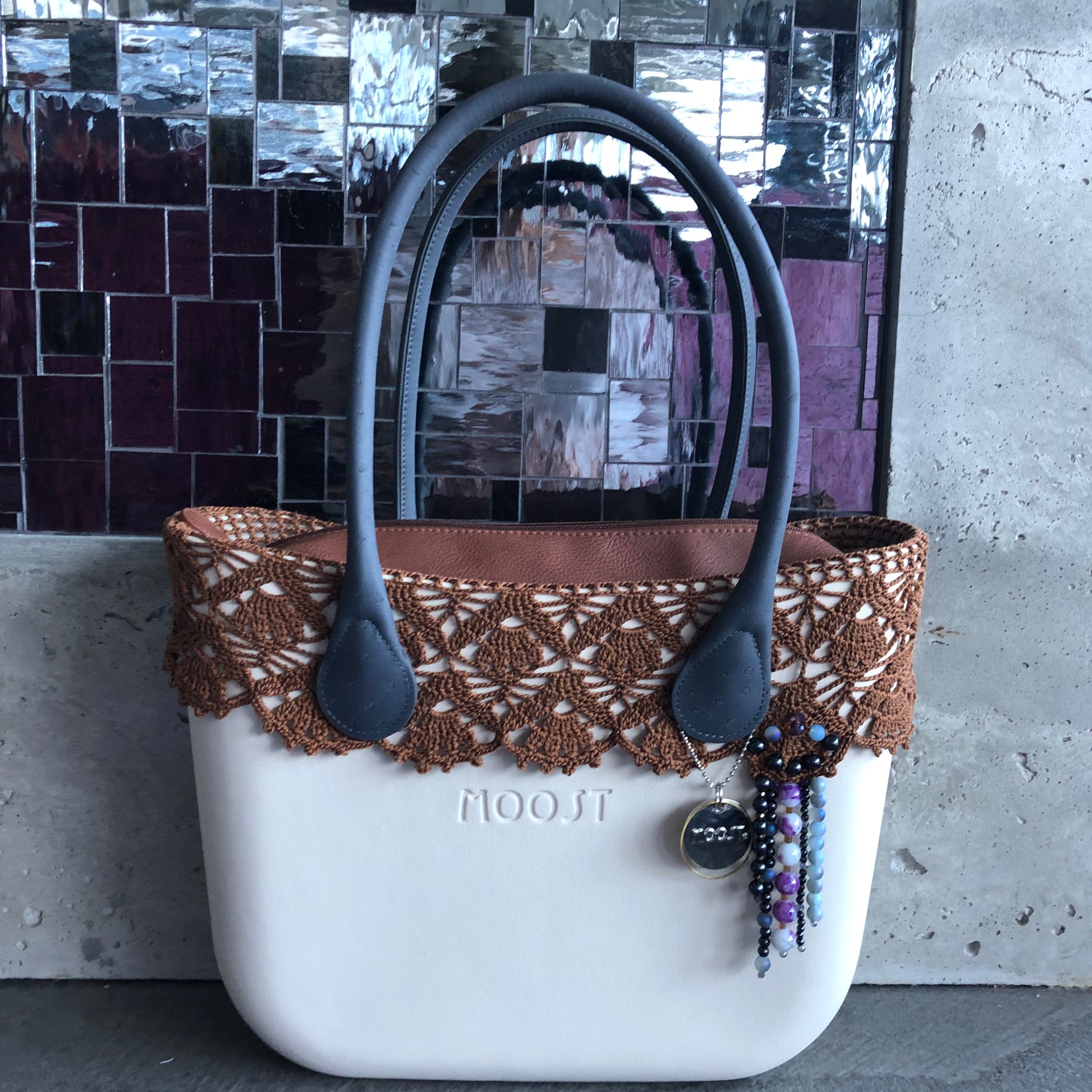 The Beaded Tat Trims adds class and elegance across the top of your shell to really make it a statement piece. Place the tatted trim on the Moost Shell, fold over the top of the Shell and then add your handle to secure in place.