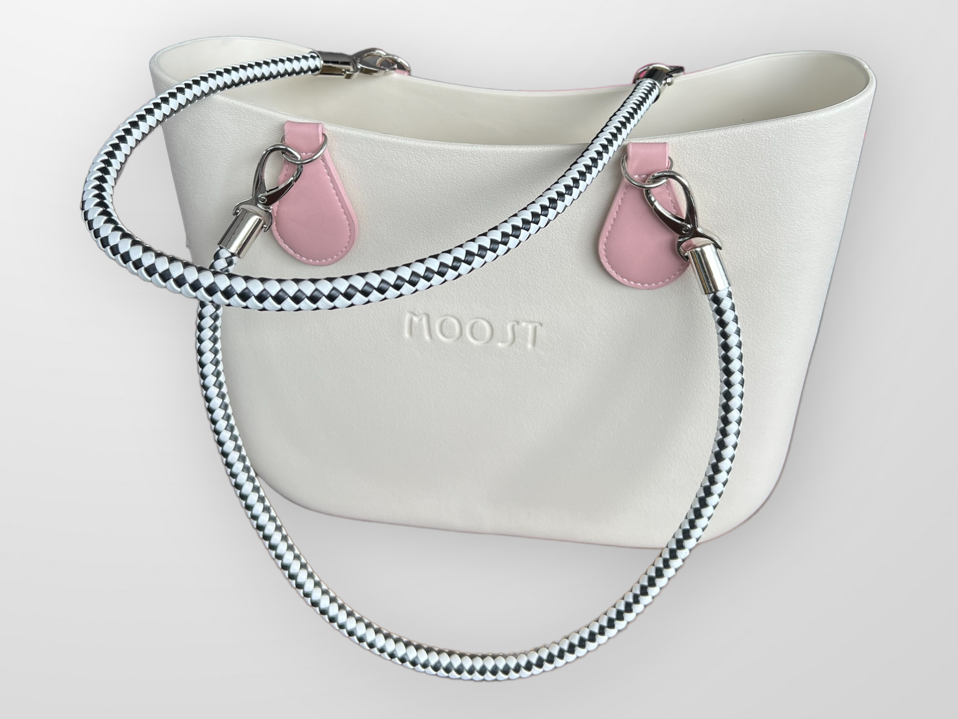 Purchase includes 2 Cross Hatch Handles for each side of the Moost Bag with Screw/Knob connector piece.