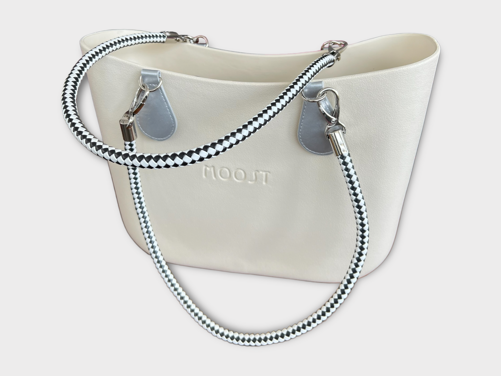 Purchase includes 2 Cross Hatch Handles for each side of the Moost Bag with Screw/Knob connector piece.
