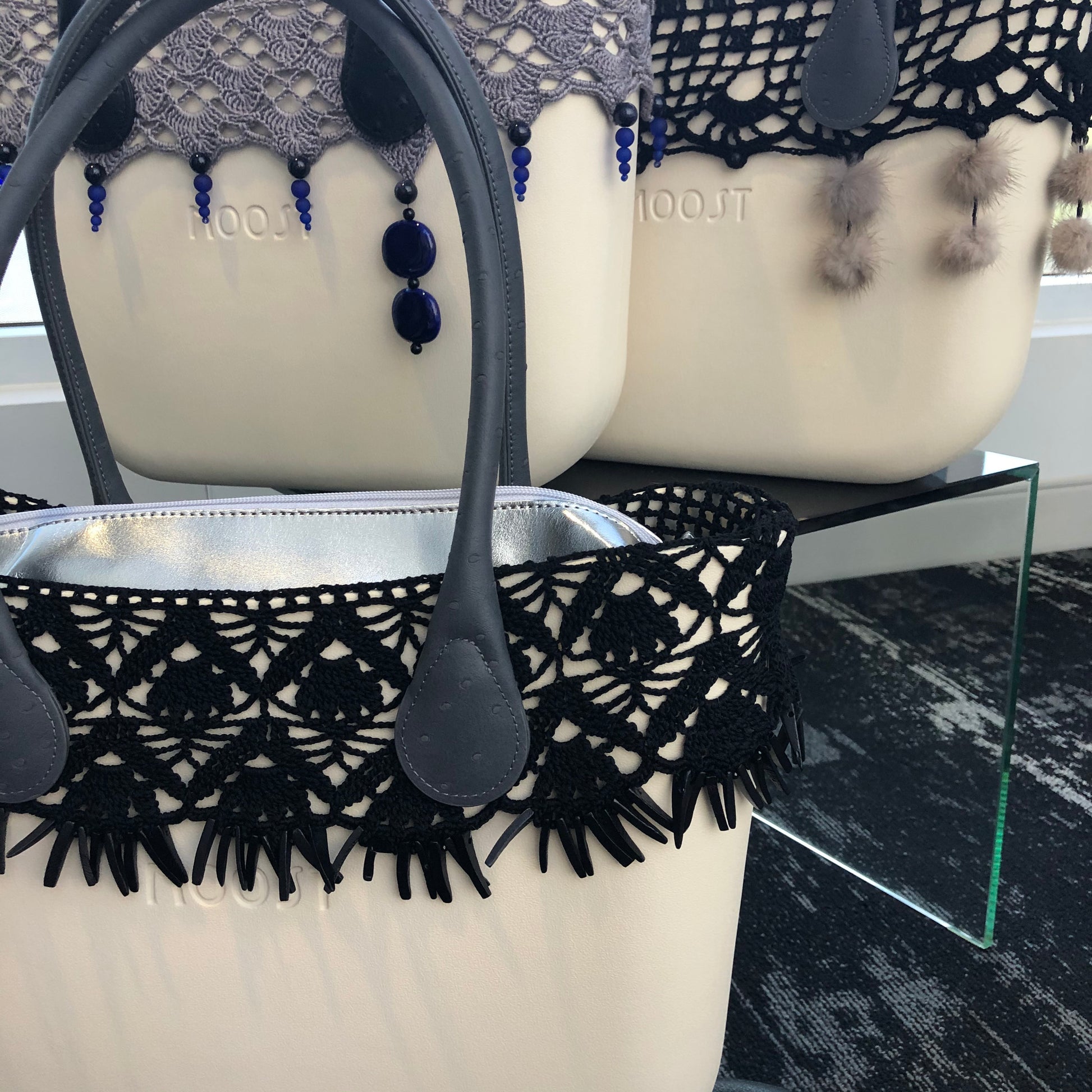 The Beaded Tat Trims adds class and elegance across the top of your shell to really make it a statement piece. Place the tatted trim on the Moost Shell, fold over the top of the Shell and then add your handle to secure in place.
