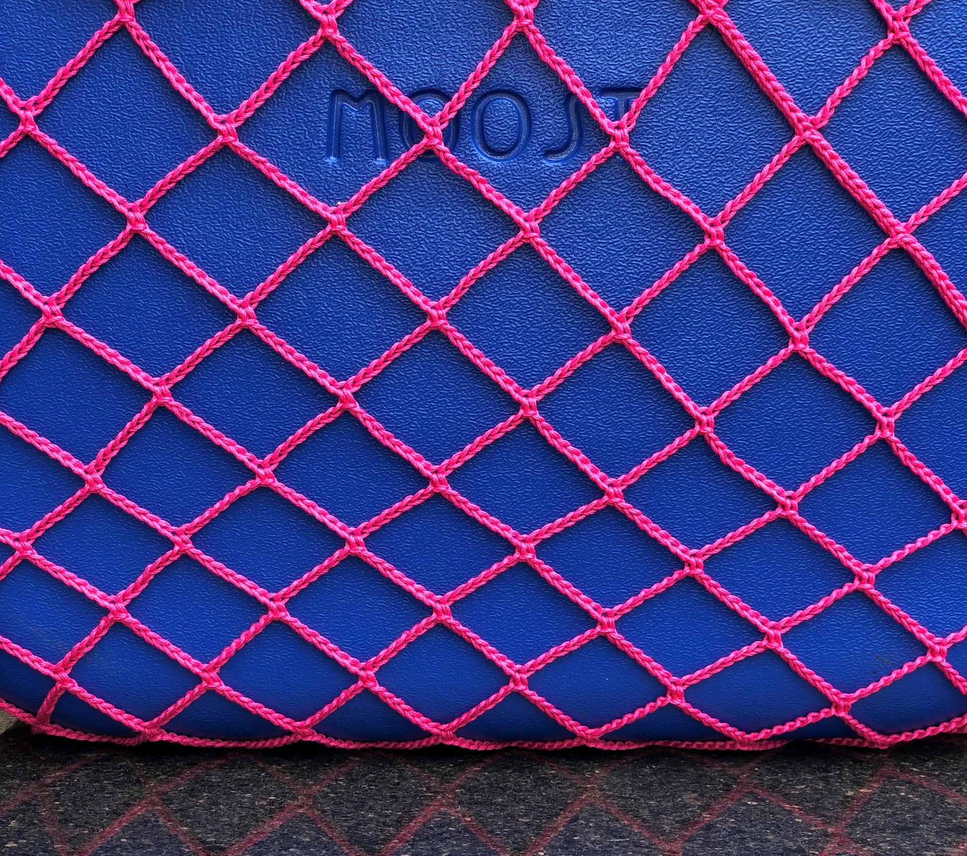 Moost Handmade Full Net Trims cover the entire Moost Bag Shell. Simply drop the Moost Shell into the full trim and and then attach your handle through one of the net sections.