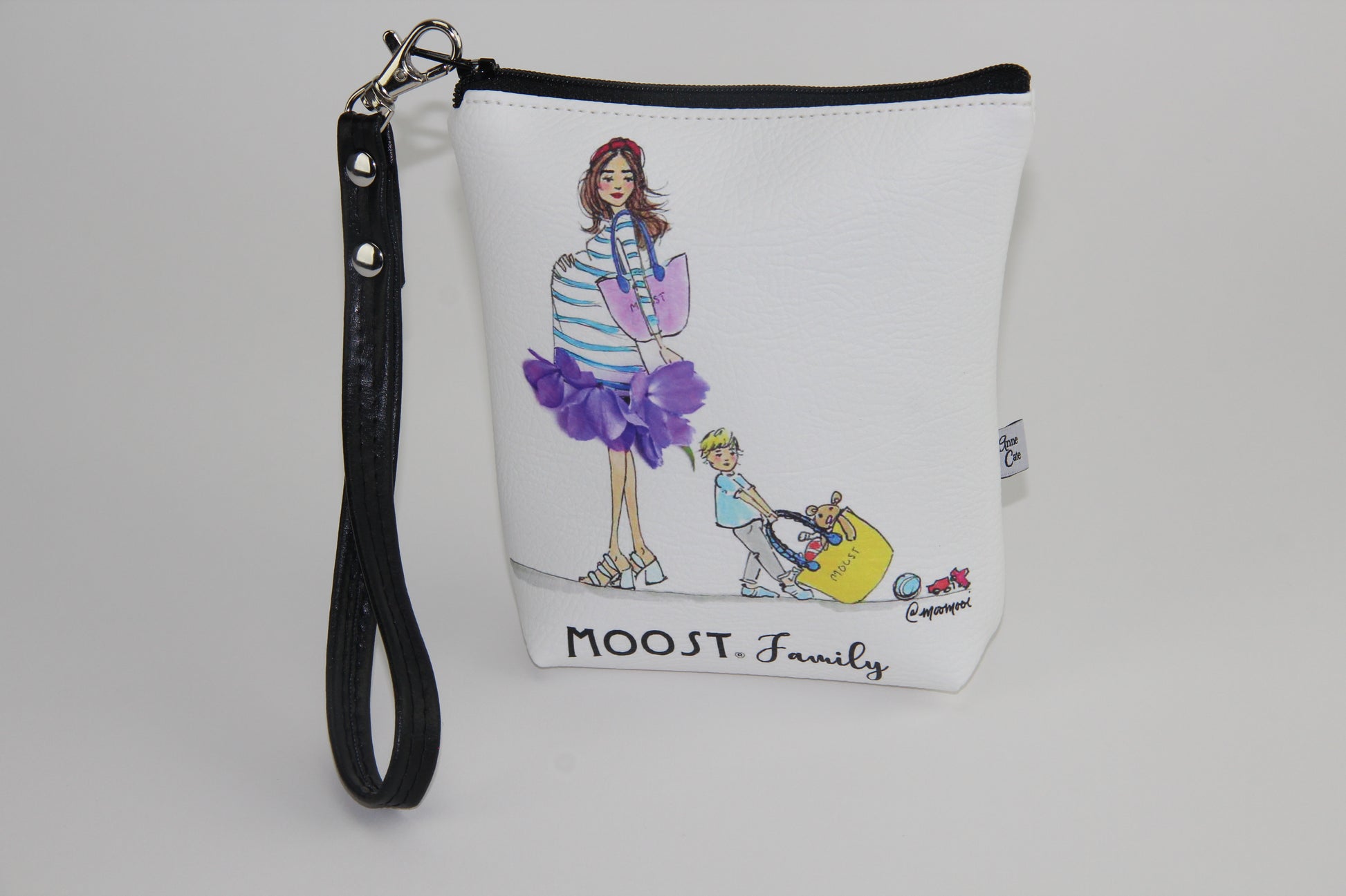 Use this Moost Mama bag to help keep you organized. Use as a snack bag, paci holder, or diaper bag organizer! Or clip the wristlet strap on for a night out with friends.