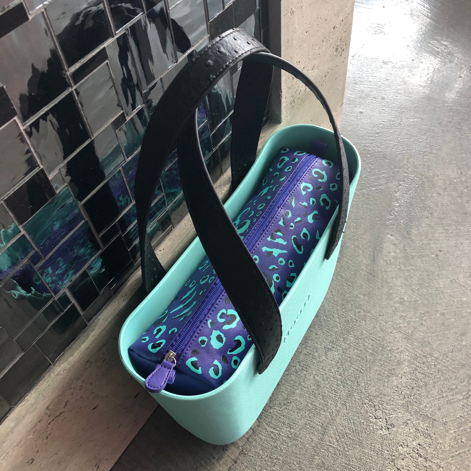 You can find the signature Tiffany's Blue on this Standout Painted Inner Bag. Pair her with a light colored Shell for a truly upscale & unique look.