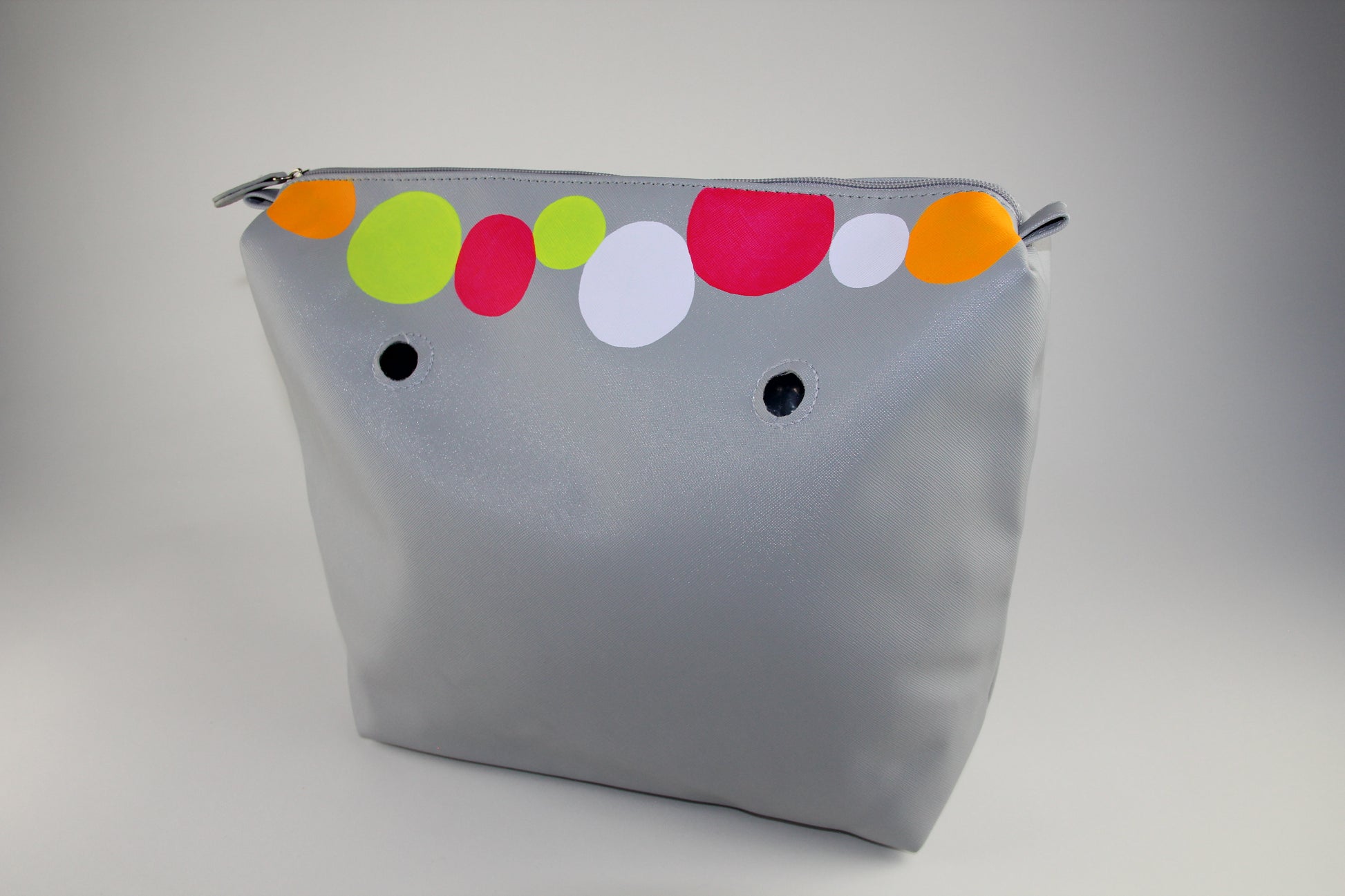 Who loves color and fun? EVERYONE. If you're ready to brighten your Moost Bag, Party Circles is your girl. She pairs well with the Gray, Apple Green, Green, and Navy Shell.
