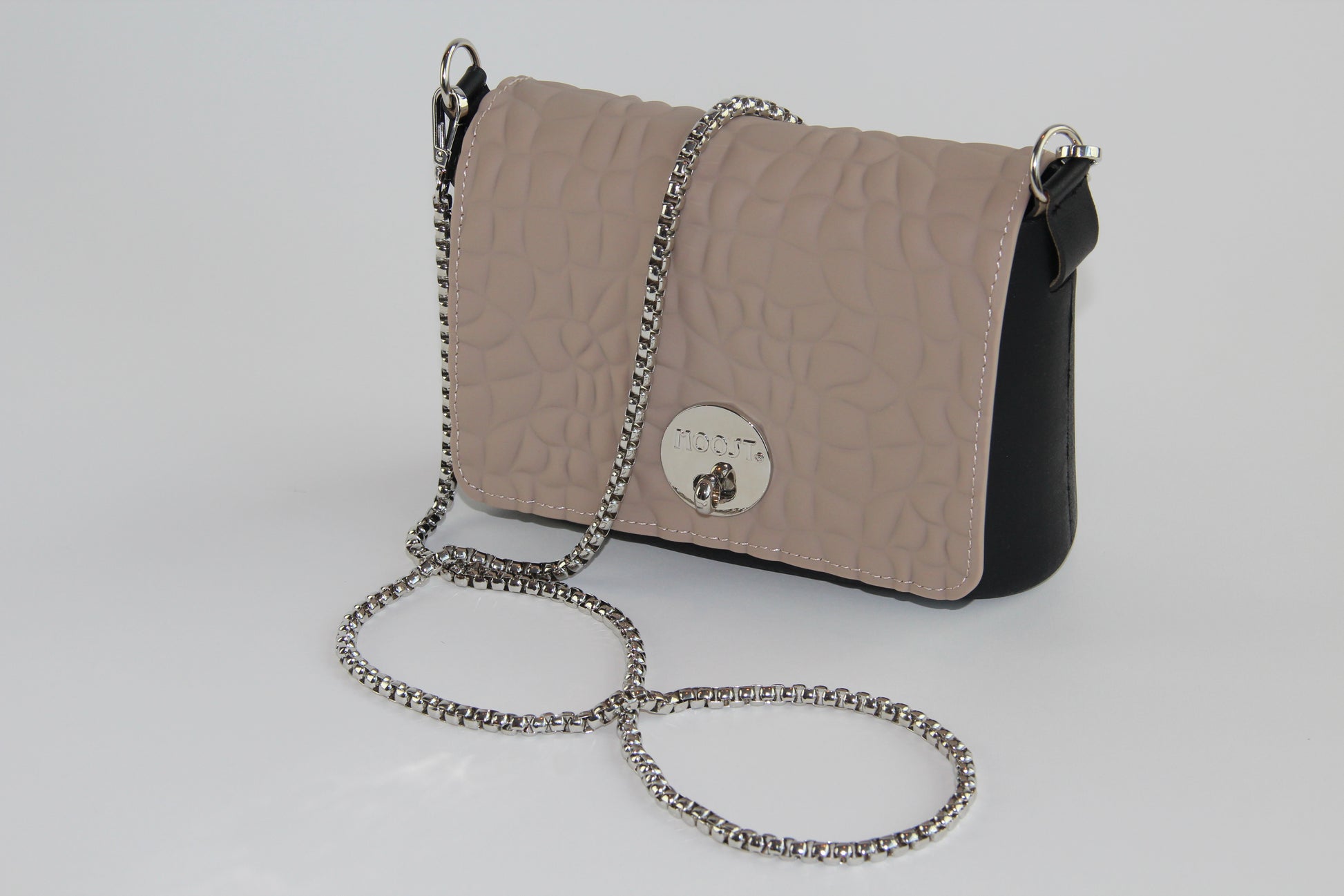 You've seen the Trend on Gucci Handbags. We're bringing it to life on a Mini Moost Crossbody. A silver, metal alloy, box weave pattern chain strap.
