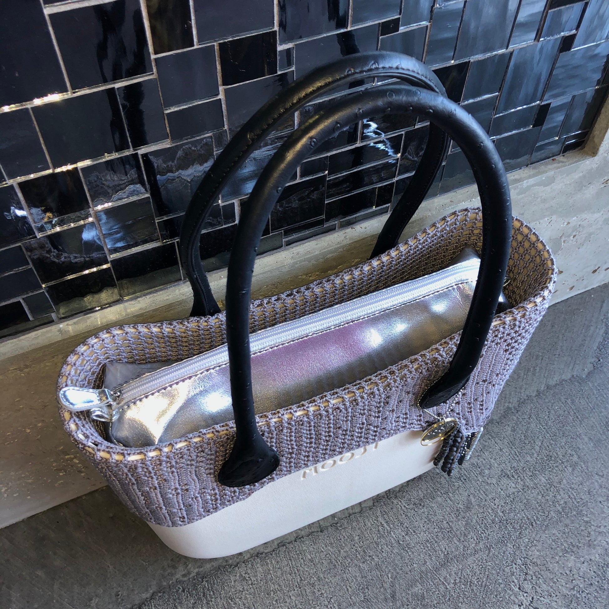 Take it up a notch with this Silver Metallic Inner Bag. They are water resistant and fits perfectly snug into a Moost Bag Shell. This fully lined inner bag features a full zip top closure and includes one inner zip pocket. Simply place the Inner Bag into the shell and attach the handles. This connects the inner bag to the shell and keeps the bag completely closed.