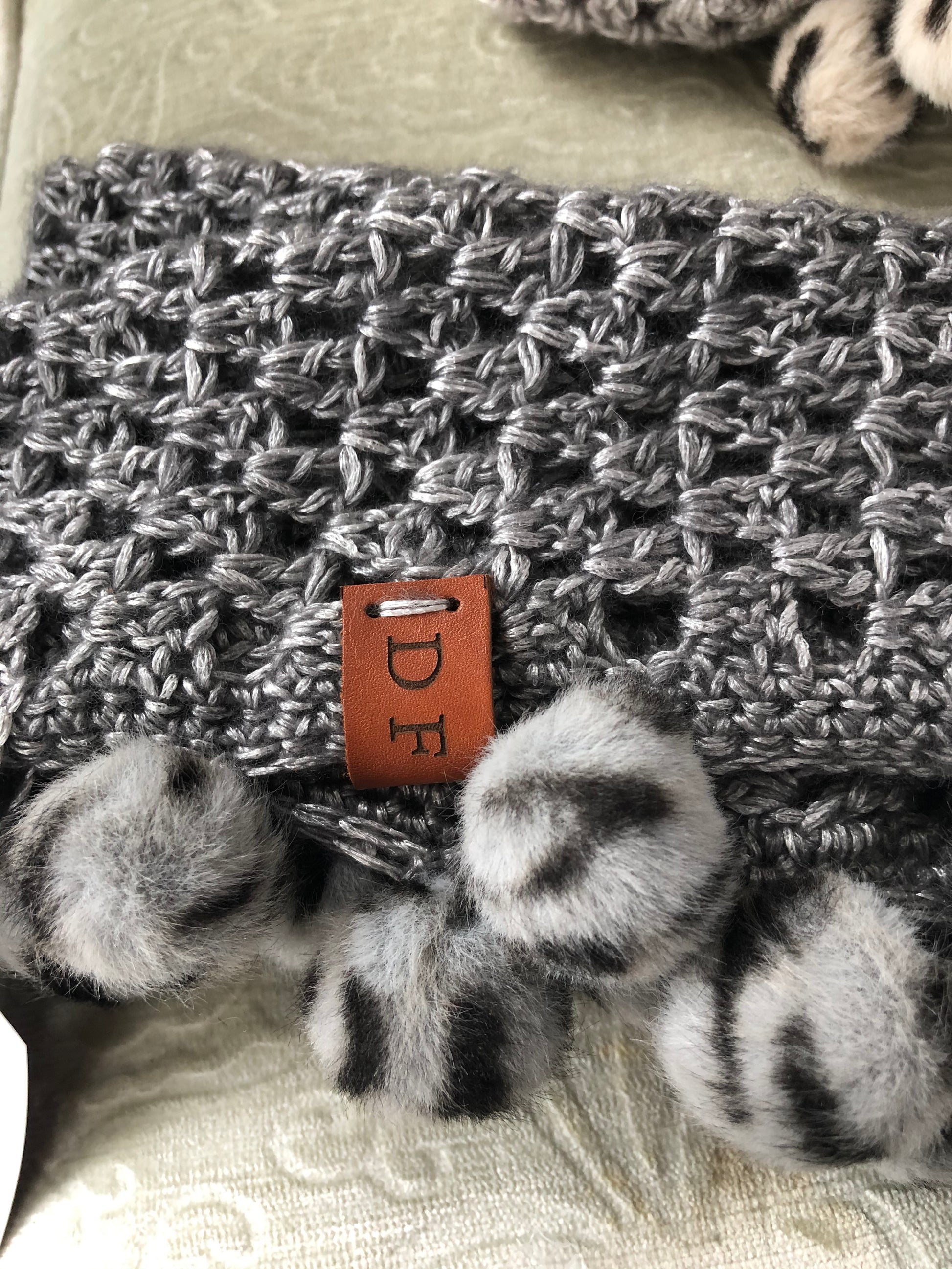 Elegance and that "oh so cozy and warm" appearance!! But with a funky touch! These Trims are handmade using a light, soft Wool Yarn. The funky comes with the Gray Cheetah Pom Pom's elegantly dangling from the Trim.