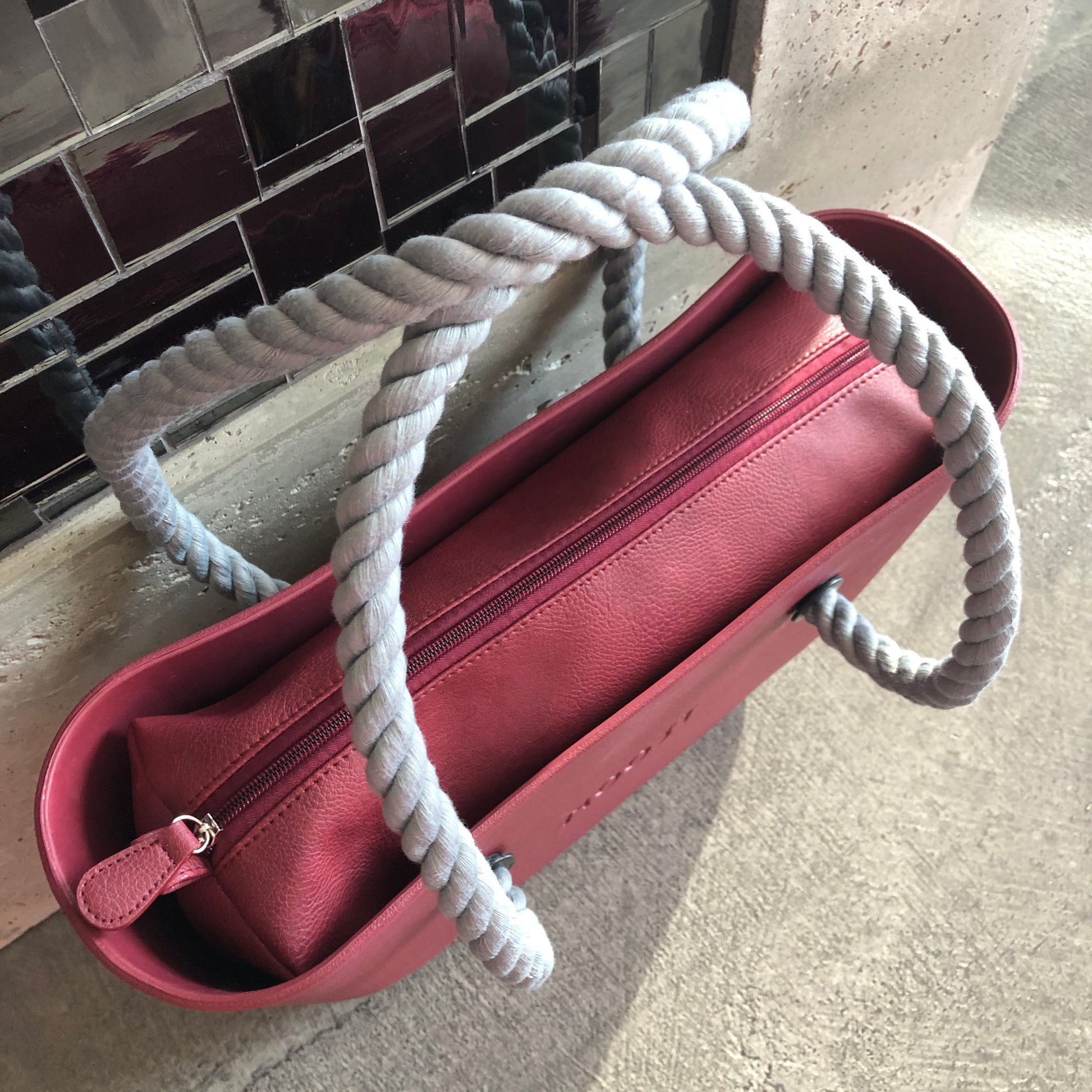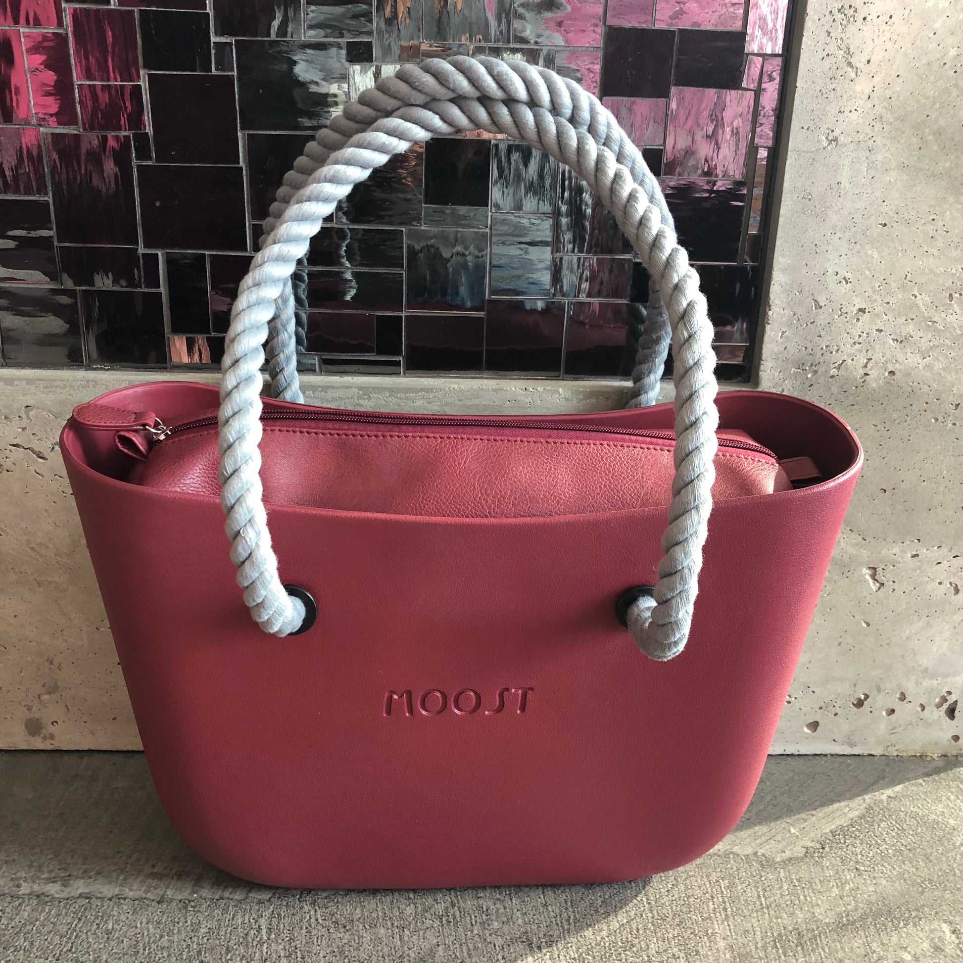 Take it up a notch with this Textured Maroon Moost Faux Leather Inner Bag. They are water resistant and fits perfectly snug into a Moost Bag Shell. This fully lined inner bag features a full zip top closure and includes one inner zip pocket. Simply place the Inner Bag into the shell and attach the handles. This connects the inner bag to the shell and keeps the bag completely closed.