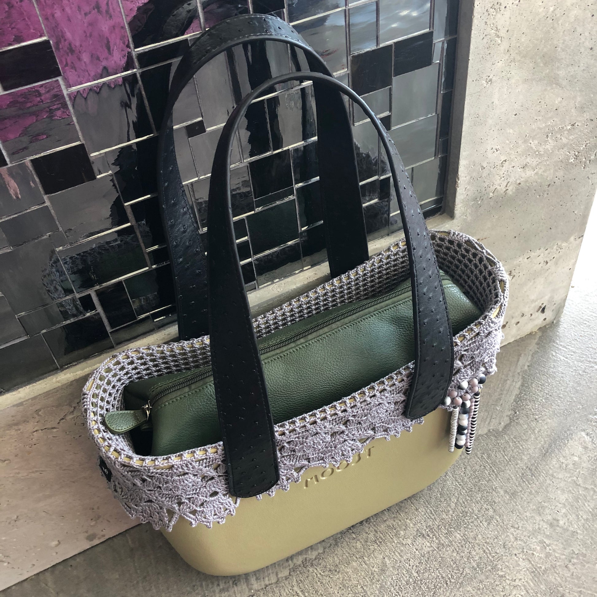 The Beaded Tat Trims adds class and elegance across the top of your shell to really make it a statement piece. Place the tatted trim on the Moost Shell, fold over the top of the Shell and then add your handle to secure in place.