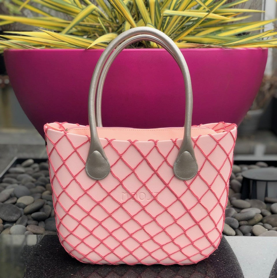 Moost Handmade Full Net Trims cover the entire Moost Bag Shell. Simply drop the Moost Shell into the full trim and and then attach your handle through one of the net sections.